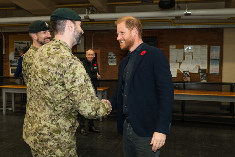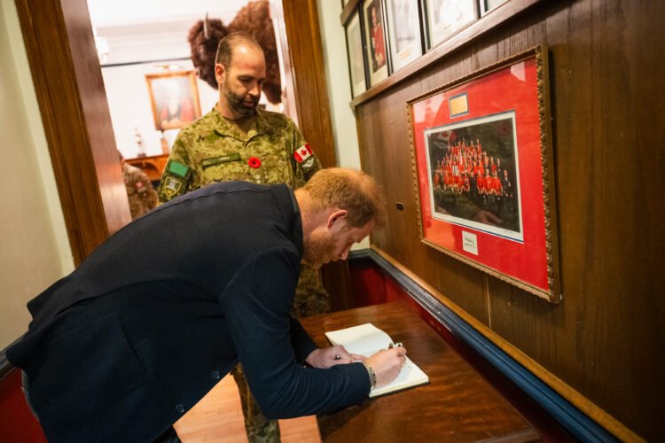 Prince Harry met with soldiers from the Queen’s Own Rifles of Canada and the Royal Regiment of Canada. Lieutenant-Colonel Chris Boileau, Commanding Officer of the Queen’s Own Rifles, and Lieutenant-Colonel Adam West, Commanding Officer of the Royal Regiment of Canada, discussed their units’ recent deployments and ongoing contributions to Canadian military operations worldwide.