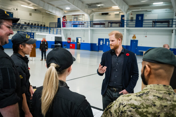 At one of the largest of the Royal Canadian Navy’s 24 Reserve divisions, Prince Harry met with Commander Paul Smith, who made history as the first Black commanding officer of the unit in 2021 and the first Black Commanding Officer of a Canadian warship in 2014. Commander Smith and Chief Petty Officer 2nd Class Andrew Payton provided an overview of the unit’s mission to train and deploy sailors for Royal Canadian Navy operations while maintaining a strategic presence in Canada’s largest city.